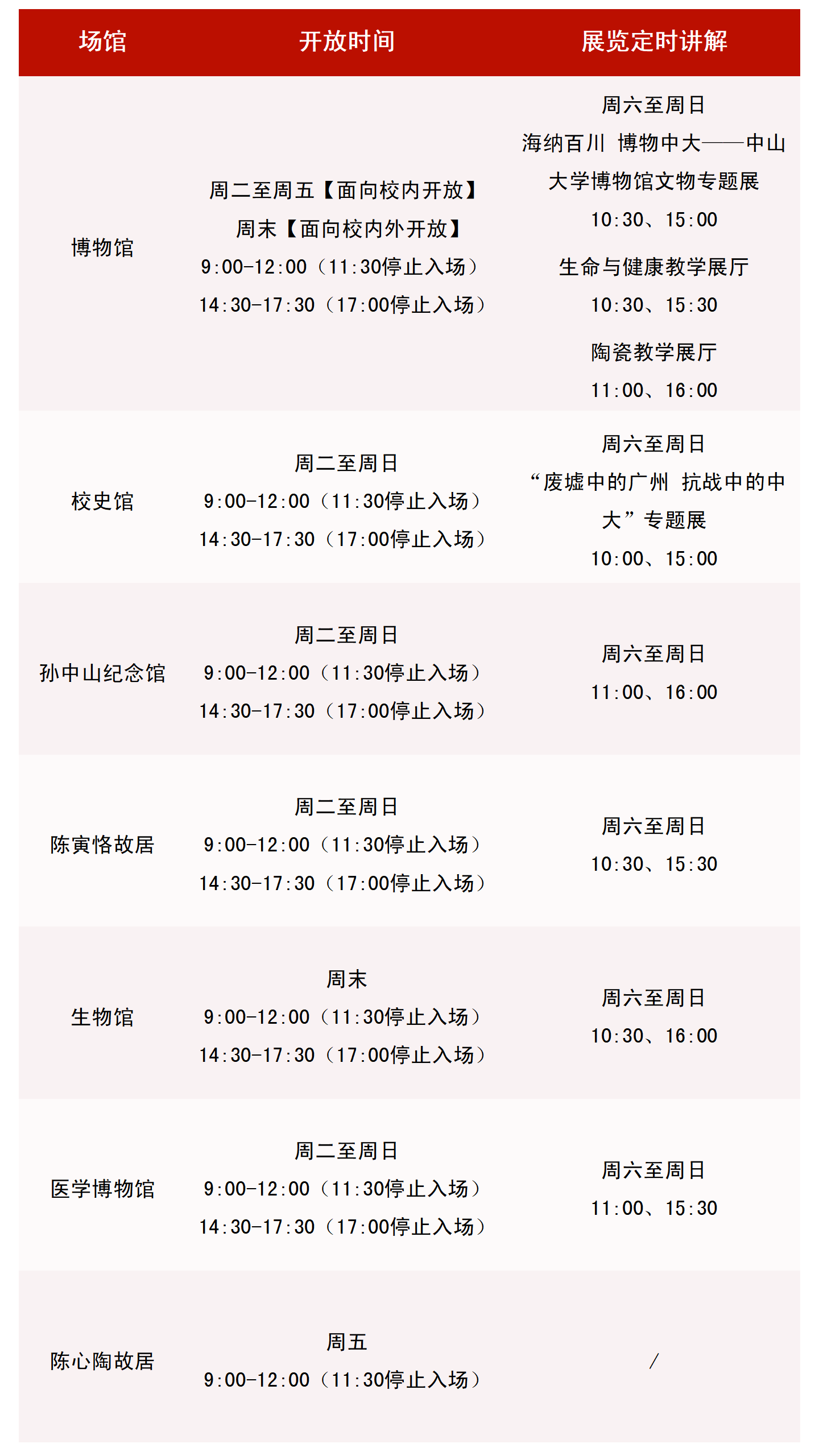 校史馆、孙中山纪念馆、名人故居、医学博物馆:020-84111846